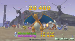 Die Mindestleistung beträgt 12.000 Punkte. Ziel des Spieles ist es möglichst viele Punkte während des Fluges zu sammeln. Der Ablauf ist dabei ähnlich wie dem bei Pelippers Minispiel in der Standzone. Statt Ringen gibt es hier aber Scheiben und zusätzlich zum Durchfliegen der Scheiben kannst du diese auch per Angriff mit dem Button 2 zerstören um Punkte zu erhalten. Dies ist sehr wichtig, da man durch ein Durchfliegen alleine kaum genug Punkte bekommt. Nutze den Button 2 also fleißig. Mit dem neben Brutalanda herumfliegenden Staraptor ist dieses Spiel besonders gut lösbar, wobei Glurak und Togekiss auch eine gute Wahl sind.