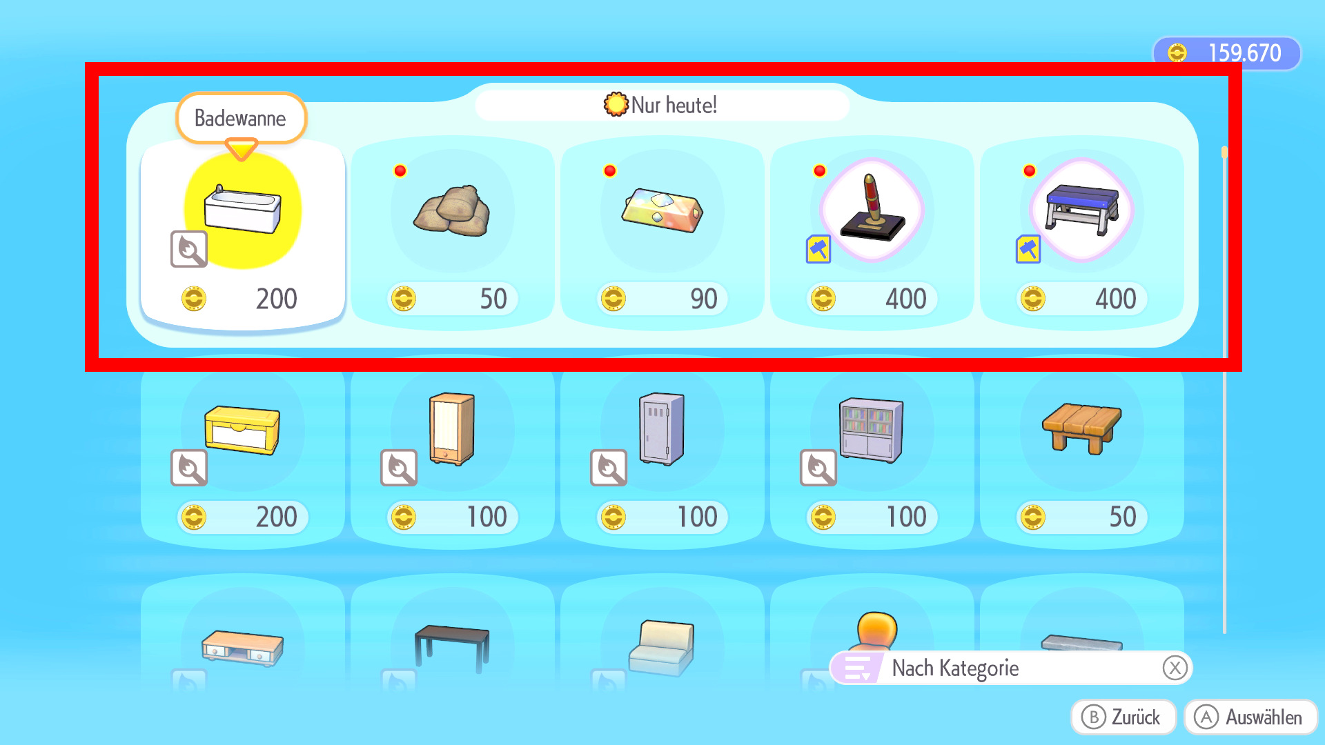 An jedem Pokémon-Center in den Gebieten von Pokopia gibt es einen PC. Über diesen PC kann ein Laden geöffnet werden, in dem mit Life-Münzen eingekauft werden kann. Besonders spannend in diesem Laden sind die 5 Angebote ganz oben über den Standard-Angeboten im Laden. Diese Angebote wechseln täglich um 5 Uhr morgens und werden zufällig ausgewählt.