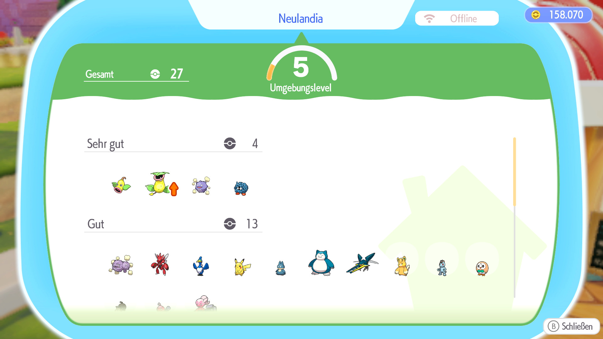 Das Umgebungslevel beginnt in jedem Gebiet bei 1 und kann auf eine Maximalstufe von 10 angehoben werden. Mit jedem Level werden weitere Inhalte und Challenges am PC freigeschaltet und ermöglichen euch so neue Optionen zu nutzen. Außerdem werden so weitere Wünsche von Pokémon freigeschaltet.