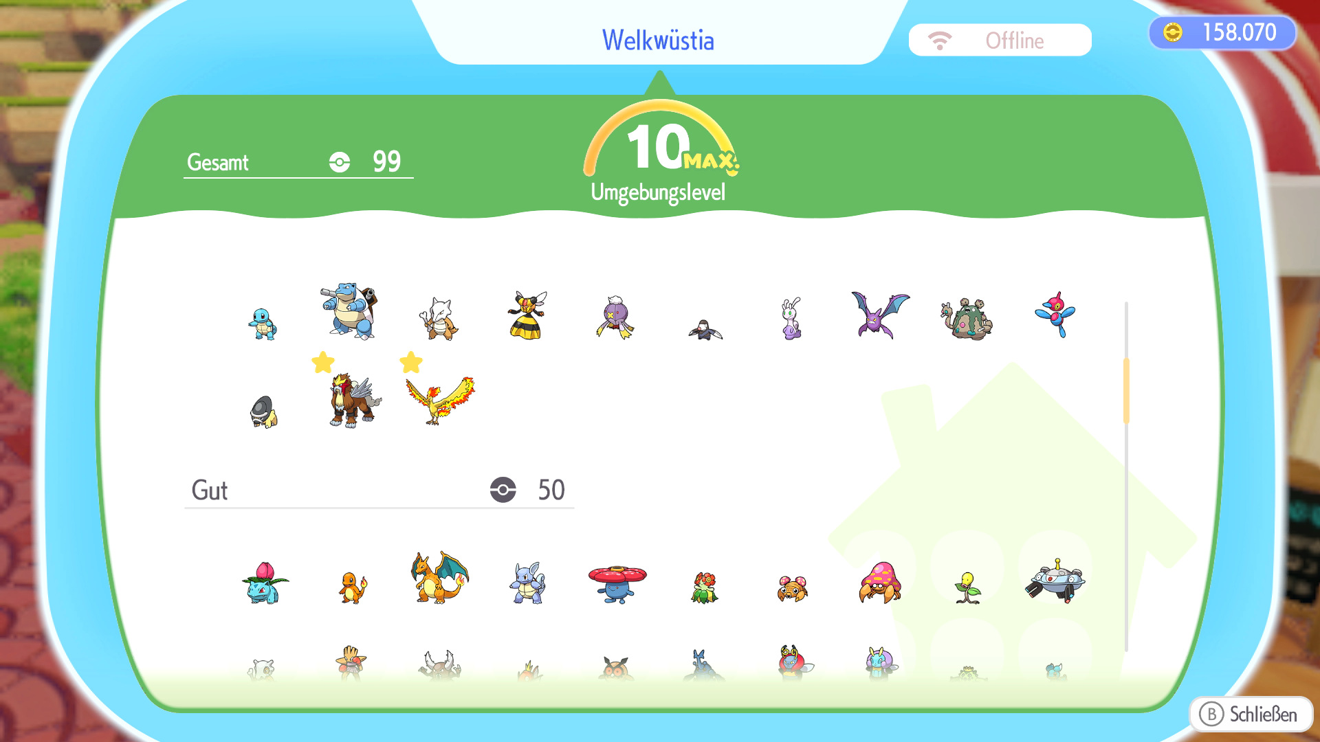 Legendäre Pokémon werden in der Liste der Pokémon mit einem Stern markiert. Sind sie glücklich, erhöht sich das Level umso schneller für euer Gebiet. Eine Übersicht davon,