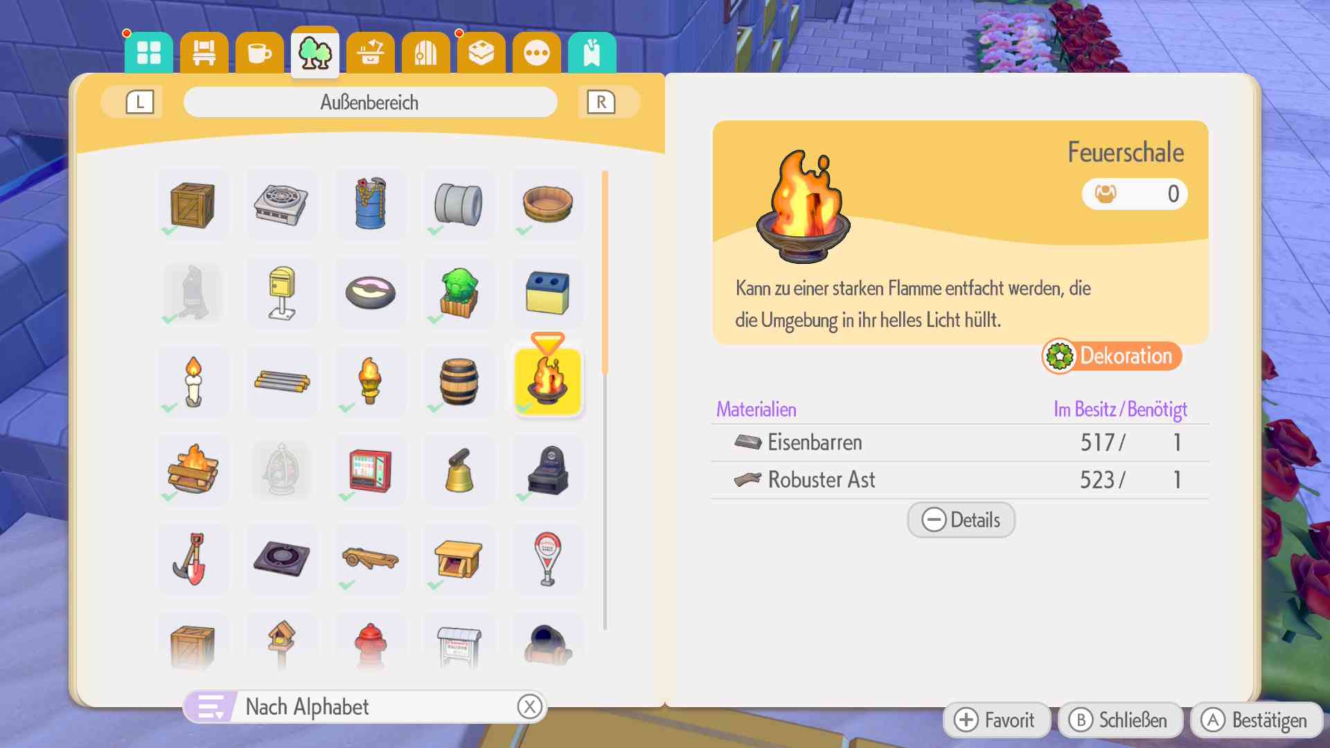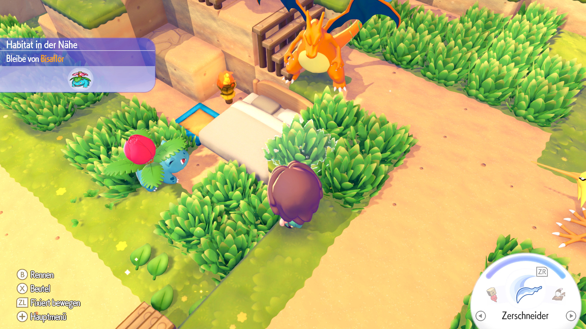 reindrückt, wenn ihr im Habitat eines Pokémon steht. Ihr seht dann eine gestrichelte Linie als Grenze. Innerhalb dieser Grenze könnt ihr Objekte für Pokémon platzieren. Achtet