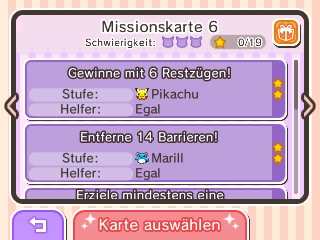 | Nr. | Missionsziel | Stufe | Helfer / Pflicht-Pokémon | Sterne |