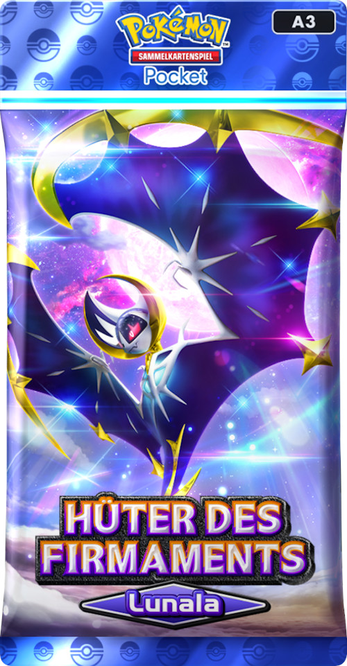 Auf dieser Seite findet ihr eine Übersicht über alle Karten, die in dem Boosterpack "Hüter des Firmaments (Lunala)" in Pokémon TCG Pocket erhältlich sind. Dieses Boosterpack ist eines von zwei erhältlichen Packs des Sets "Hüter des Firmaments". Insgesamt können 140 Karten aus diesem Booster gezogen werden. Dieses Set ist am erschienen.