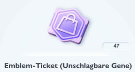 Tickets, die man für das Vervollständigen des "Unschlagbare-Gene"-Kartendecks erhält. Mit diesen Tickets kann man die zur aktuellen Erweiterung gehörigen Embleme kaufen. |