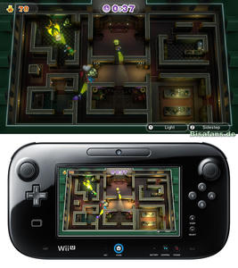 Kommen wir nun zu den reinen Multiplayer-Spielen. Diese können nur mit mehreren Personen gespielt werden, sind jedoch Partyspiele mit Spaßgarantie. In Animal Crossing versucht ein Spieler Früchte einzusammeln und zu einem Zielort zu bringen, während ein anderer dies mit Jägern zu verhindern versucht. Klingt einfach, ist jedoch in der Praxis sehr spaßig, da der Jäger zwei Personen auf einmal steuert! In Luigis Geisterville schlüpft der Spieler mit GamePad in die Rolle des Geistes und ist unsichtbar. Er muss versuchen die Geisterjäger zu fangen. Erschwert wird dies jedoch dadurch, dass die Jäger Taschenlampen besitzen, die den Geist sichtbar machen. Wer den jeweils anderen einige Mal erwischt, gewinnt. Die Jäger haben dabei zwei kleine Vorteile. Zum einen vibriert der Controller, wenn ein Geist in der Nähe ist und zum anderen blitzt es gelegentlich und der Geist wird kurz sichtbar. Ein absoluter Spaß mit mehreren Personen!