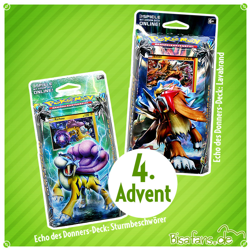 Hinter dem 22. Türchen zum 4. Advent befindet sich heute etwas für Sammelkarten-Fans: Wir verlosen die Themendecks des Sonne & Mond-Zyklus und der Erweiterung Echo des Donners! Mit den Decks ist es euch möglich schnell und einfach in das Pokémon Sammelkartenspiel einzusteigen. Zu gewinnen gibt es also folgendes: