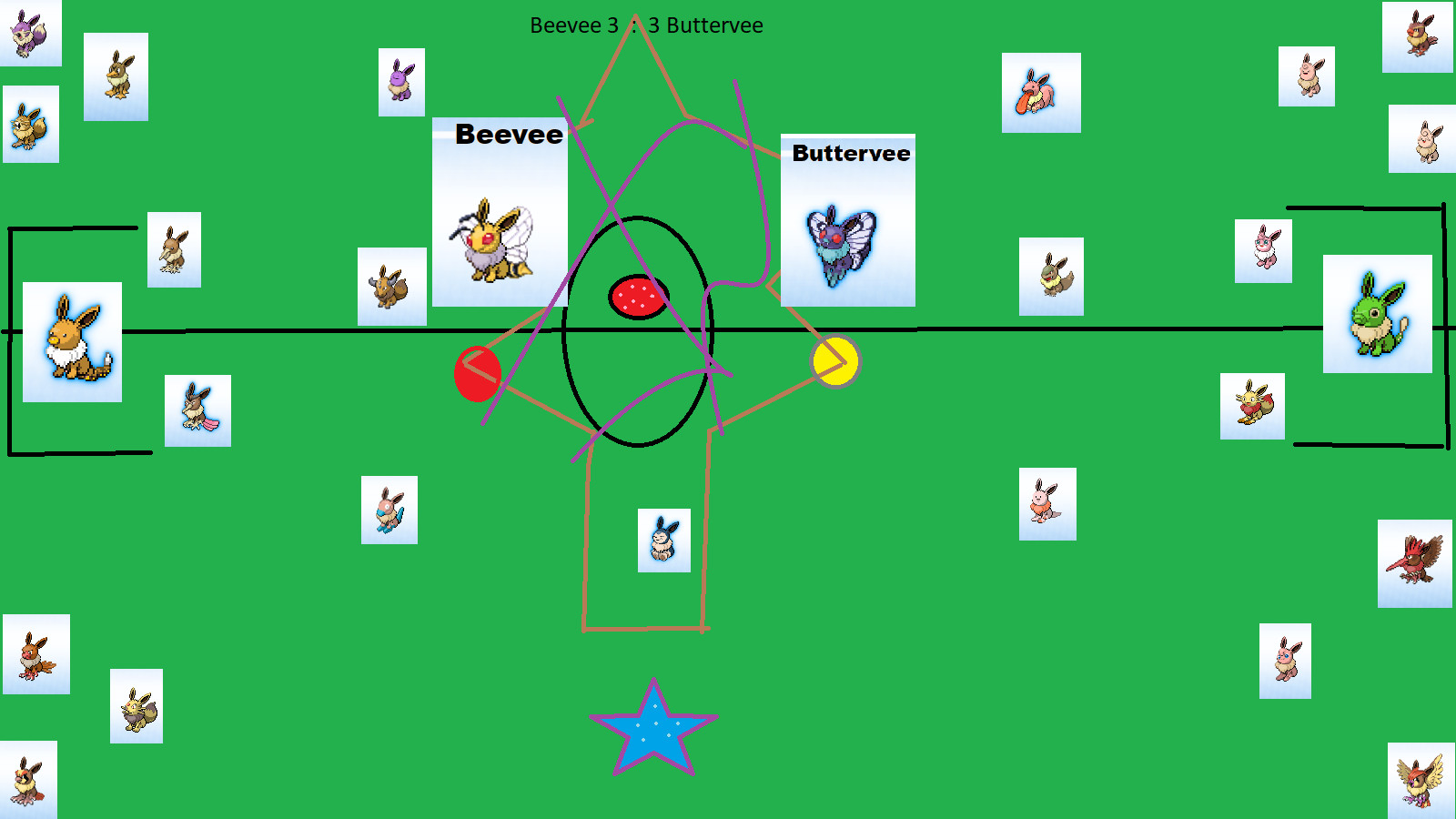 Beevee hat Weevee gefault es gibt ein 11 Metter für Weevee sie schoss das 2 Tor 8 Minunten.