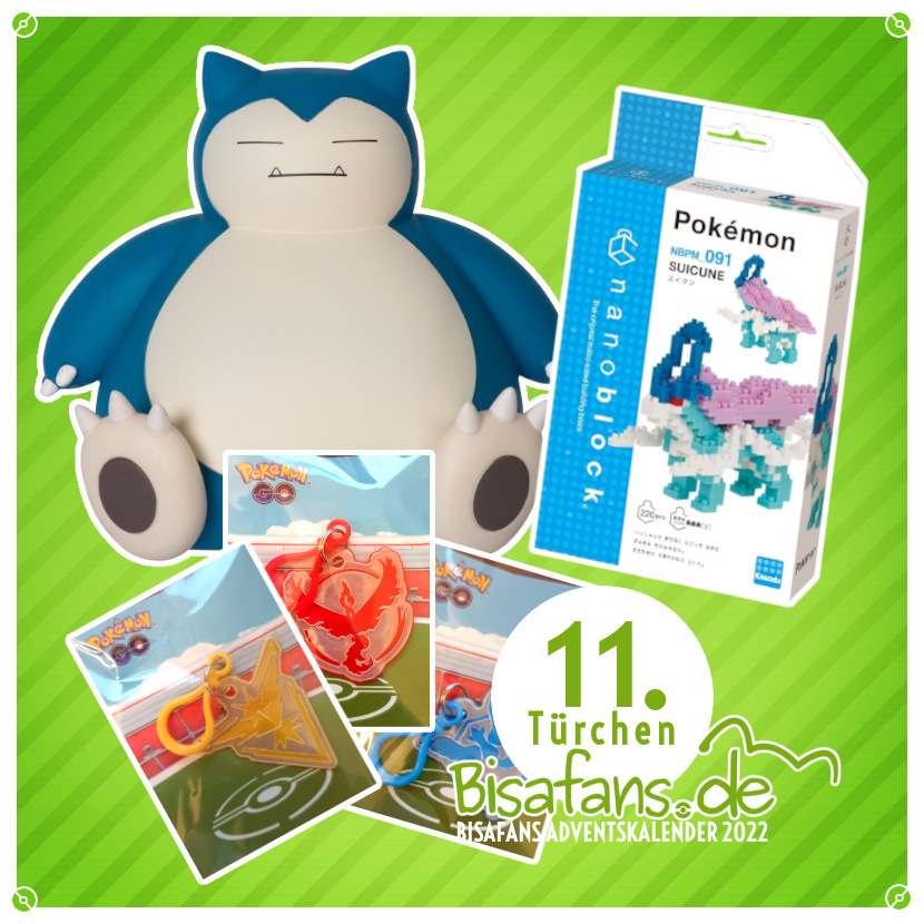 Ein neues Gewinnspiel startet mit diesem Türchen zum 3. Advent! Dieses Mal verlosen wir nicht nur einen Pokémon GO-Team-Anhänger, sondern auch eine tolle Relaxo-Figur aus Vinyl. Für die Bastler unter euch gibt es außerdem ein Suicune-Klemmbausteinset, welches zusammengebaut werden kann, um eine eigene Figur kreieren zu können. Zu gewinnen gibt es also Folgendes für einen glücklichen Teilnehmenden: