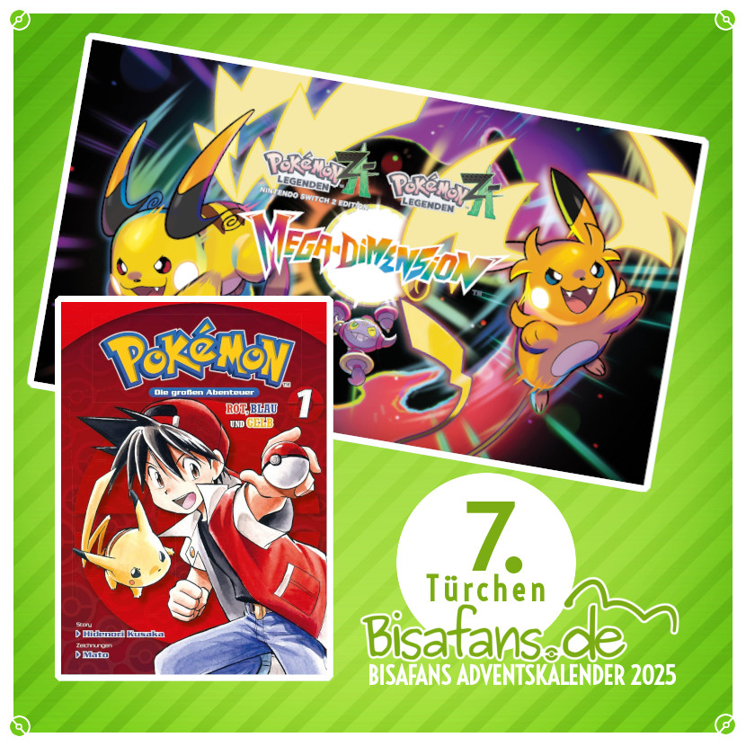 Mit dem zweiten Advent startet unser nächstes Gewinnspiel! Wir verlosen heute ein Mal das DLC "Mega-Dimension" zu Pokémon-Legenden: Z-A! Zusätzlich umfasst der heutige Preis auch eine Sammelband-Edition von Pokémon - Die großen Abenteuer: Rot, Blau und Gelb 01! Zu gewinnen gibt es also folgende Preise für einen glücklichen Teilnehmenden:
