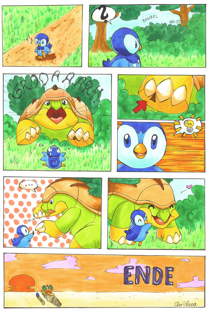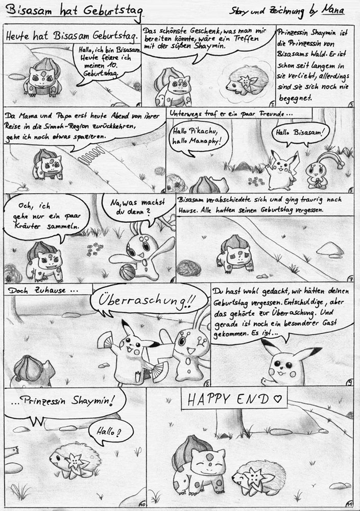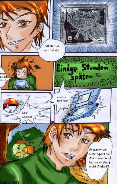 Sage und schreibe beinahe 80 Einsendungen sind für diesen Fanmanga-Wettbewerb eingegangen, bei dem es 4 mal ein Set bestehend aus 1 Edition Diamant oder Perl plus einem offiziellen Lösungsbuch von Future Press zu gewinnen gab. Da fiel die Auswahl der Sieger ganz besonders schwer! Nun könnt ihr euch aber endlich die vier Gewinner-Mangas anschauen. Auch eine Auswahl von weiteren Mangas findet ihr auf dieser Seite. Alle Mangas konnten wir leider nicht ausstellen, dafür fehlt der Platz. Und nun möchte ich mich noch bei allen bedanken, die mitgemacht haben! Vielen Dank für eure schönen und niedlichen Beiträge!