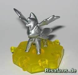 Eigentlich besteht die Serie nur aus 10 Figuren, es gibt aber alle 10 Figuren doppelt! Pikachu z.B. wurde einmal in bunt und einmal in Platin umgesetzt. So gibt es alle 10 Pokemon Charaktere in der original Farbe und auch einmal ganz in Platin. Zu jedem Pokémon gehört ein kleines Podest, darauf können die Pokémon Figuren gesteckt werden, was diese noch schöner wirken lässt.