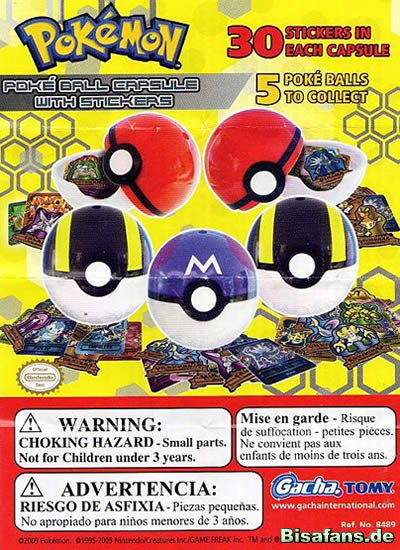 Von Tomy ist zum Herbstanfang 2010 eine ganz neue Pokemon Serie erschienen. Nachdem es bereits im Frühjahr keine Figuren sondern Pokemon DS Pens gab, gibt es im Herbst eine neue Pokemon Sticker Serie. Diese Sticker sind statt in den gewohnten durchsichtigen Kugeln in Pokebällen enthalten. Es gibt fünf verschiedene Pokebälle zum sammeln.