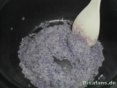 - Der Reis wird erst mit Lebensmittelfarben gekocht.