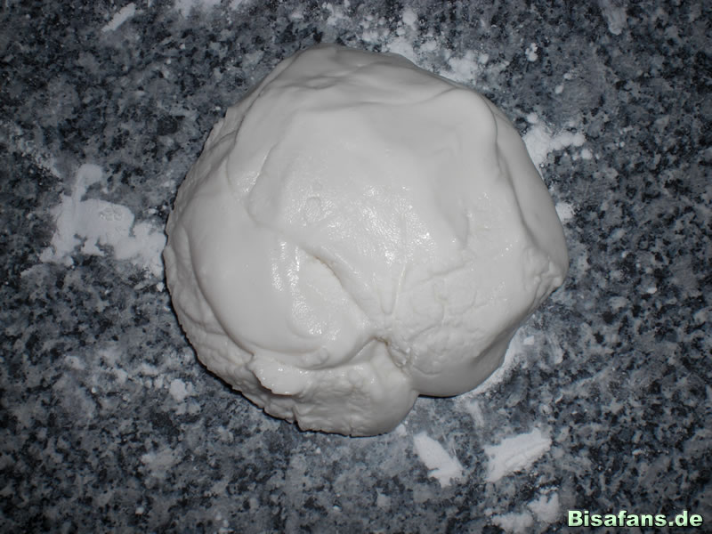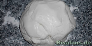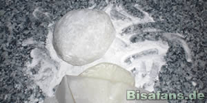 7. Bemehlt eine Arbeitsfläche und eure Hände mit