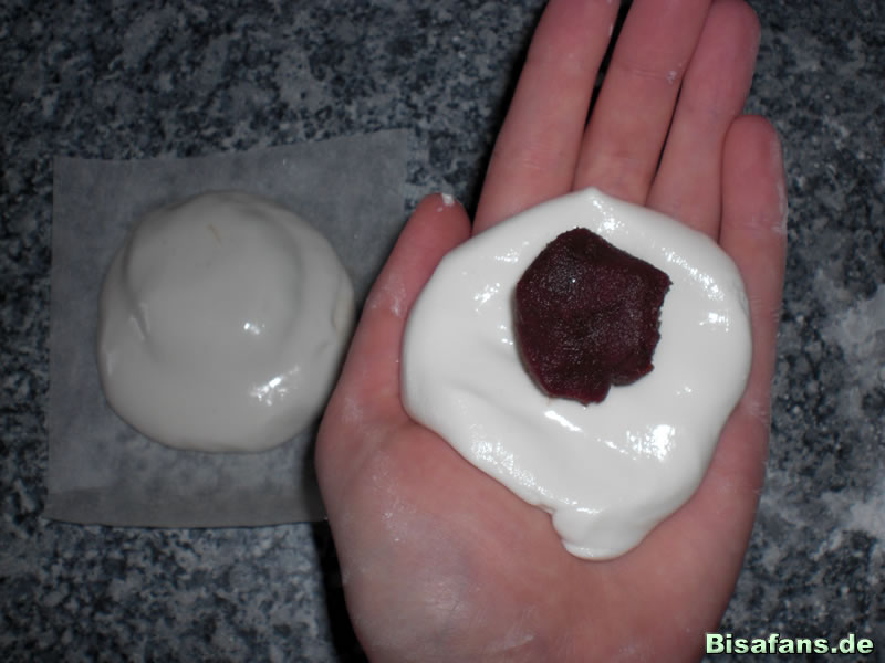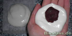 1. Zuerst müsst Ihr das Anko in 4 platte Kugeln