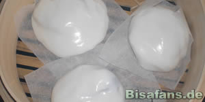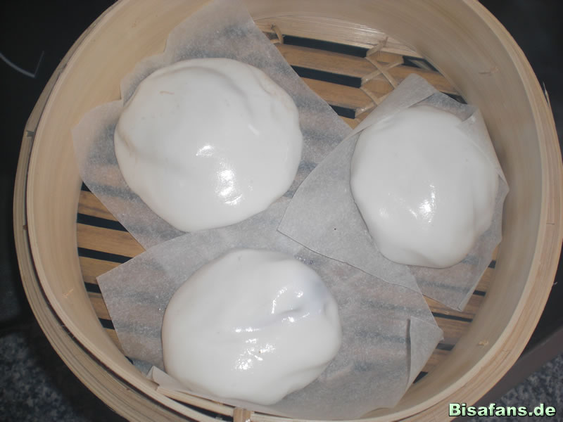samt Backpapier in den Mushiki/Dämpfer und passt auf das jedes Stück