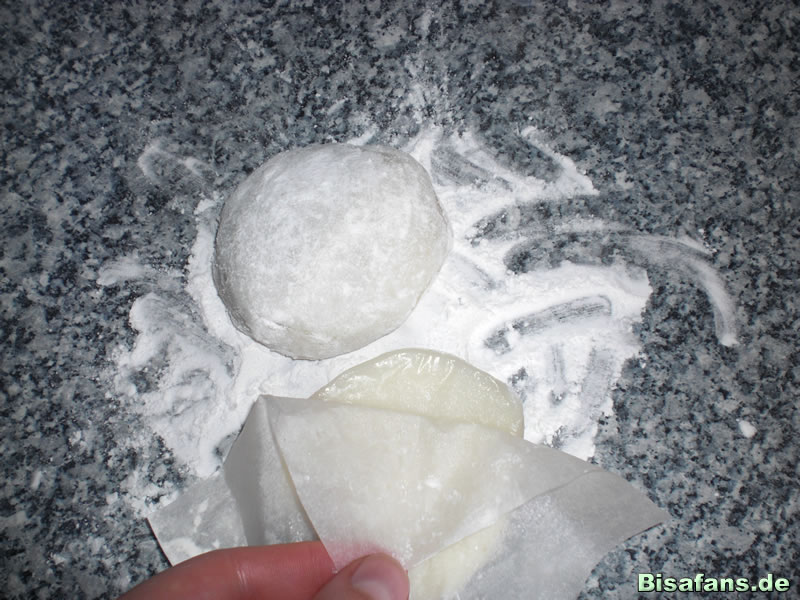 Backpapier ab und bemehlt nun leicht dem kompletten Daifuku, sodass
