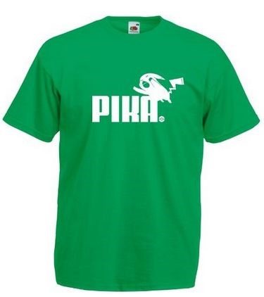 Meine Recherche ergab, dass Selbstparodie und Fremdreferenzen insbesondere auf Kleidung zu finden sind, bei der fragwürdig ist, ob sie über eine offizielle „Pokémon“-Lizenz verfügt. Deren Hersteller intendieren, sich fremdes/geschütztes Material „anzueignen“ und mit einer einfallsreichen Allusion zu verquicken. So partizipieren externe Unternehmen auf finanzielle Weise an dem kommerziellen Erfolg von der Pokémon Company, Game Freak und Nintendo (wie legal diese Teilhabe ist, sei an dieser Stelle sekundär). Abbildung 30 zeigt ein T-Shirt, welches zusammen mit einer Silhouette des Pokémon Pikachu auf das Logo des Sportartikelherstellers „Puma“ anspielt. Ein anderes Shirt zeigt das Pokémon Karpador. Dieses genießt unter Fans einen fragwürdigen Kultstatus: Es verfügt lediglich über eine einzige Attacke und diese richtet keinerlei Schaden an. Simpel gesagt ist Karpador ein sehr unnützes Pokémon. Auf dem Shirt ist Karpador mit einem nachdenklichen Gesichtsausdruck zu sehen, daneben stehen die Worte „When I evolve…I swear to God I’m going to kill you all!“ (siehe Abbildung 31). Tatsächlich entwickelt sich Karpador zu einem sogenannten Garados, einem besonders starken Pokémon des Typs „Drache“. Das Karpador-Shirt erlaubt es sich, ein unter Fans gängiges Klischee zu untergraben.