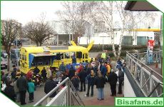 Der McDonald's Parkplatz wo der Nintendo Pikachu Bus mit vielen Leuten