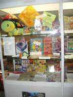 Es gab aber auch sonst viele kleine und schöne Details bei der Ausstellung zu entdecken. Erwähnenswert war unter anderem eine Sammlung von Pokémon-Abzeichen des Pokémon Organized Play oder ein offizielles Pokémon Sammelkarten-T-Shirt. Fans, die sich die Ausstellung anschauten, hatten auch die Möglichkeit sich ein Souvenier in Form eines offiziellen Pokémon Lösungsbuches und eines Pokémon Stundenplanes kostenlos mitzunehmen! Von beiden stand jeweils eine große Kiste bereit. Speziell die Lösungsbücher waren jedoch sehr schnell vergriffen. Hier bekamen nur die schnellsten Fans etwas ab ^_^