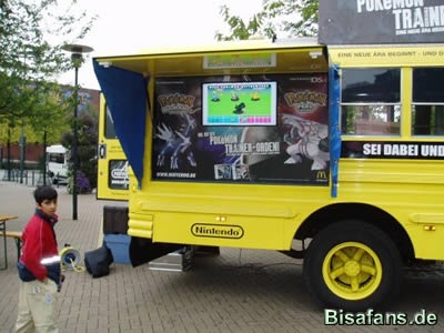 Links ist der bekannte Pokemon-Bus zu sehen und rechts ein