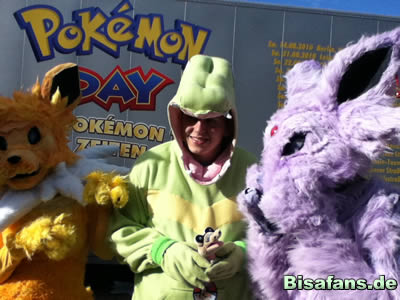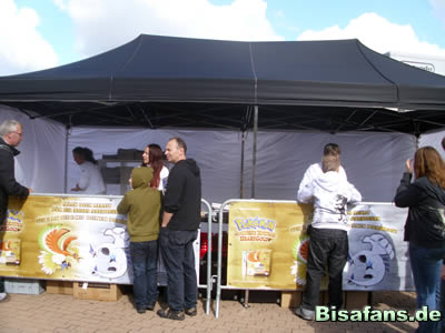 Etwas später hatte Marc mitten auf dem Platz seine, von der AnimagiC bekannte, Strandmuschel aufgebaut, um die sich eine Reihe anderer Pokémon-Fans niederließen. So tauschte man Con-Hons aus und ich konnte auch einige Animexx-User kennenlernen.