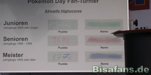 Dank der Hilfe unserer Freunde findet ihr obenstehend ein Foto der Bestwerte der Kampfprüfung in Hamburg. Die Namen wurden aus Datenschutzgründen unkenntlich gemacht, doch darf verraten werden, dass das BisaBoard-Mitglied Uxie zu den Gewinnern gehört. Allen Gewinnern herzlichen Glückwünsch und viel Erfolg beim Finale im Movie Park Bottrop am !