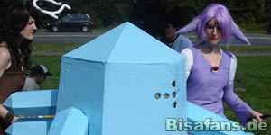 standen, kam eine Damhirplex-Cosplayerin auf uns zu und bot uns