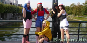Cosplayer in tollen Kostümen gab es sowohl auf der Bühne (links) als