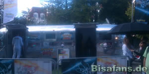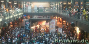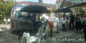Lange Schlangen und der Caravan, in dem man kommende Spiele anspielen