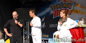 Auf der Pokémon-Bühne bot das Moderatoren-Trio eine tolle Show mit